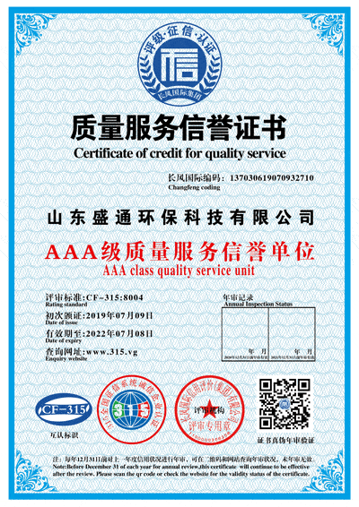 質(zhì)量服務(wù)證書